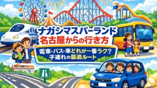ナガシマスパーランドへ名古屋から行く方法を完全解説。直通バス・電車・車の料金や時間、子連れで一番ラクな行き方を比較し、失敗しないルートをわかりやすくまとめました。