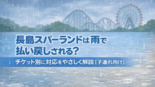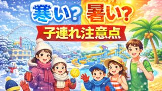 ナガシマスパーランドは寒い?暑い?子連れで後悔しないために、月別・気温別の体感温度と行くべき日・避けたい日をやさしく解説。服装判断・撤退ラインもわかります。