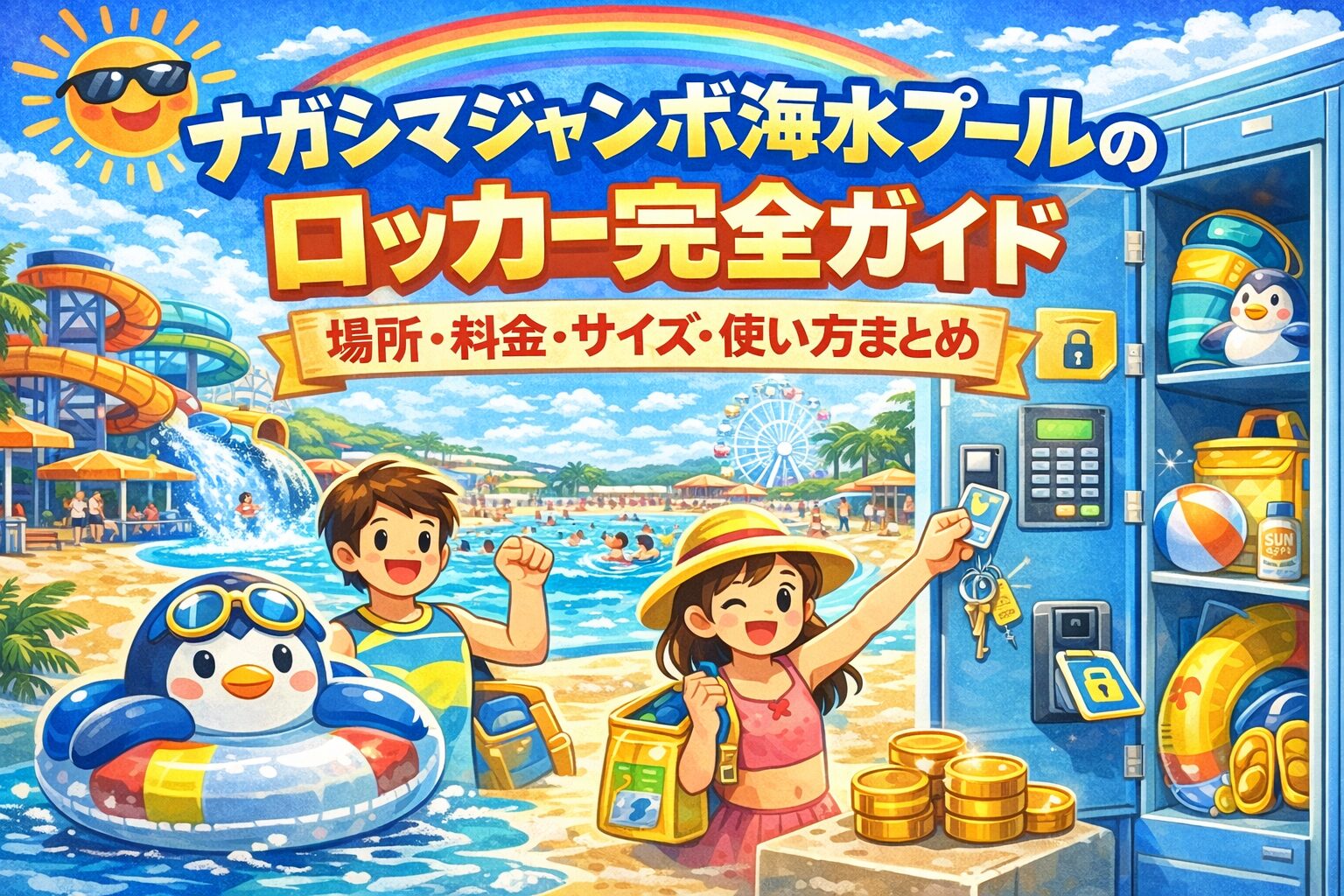 ナガシマジャンボ海水プールでは、ロッカーをうまく使うと快適に過ごせます。