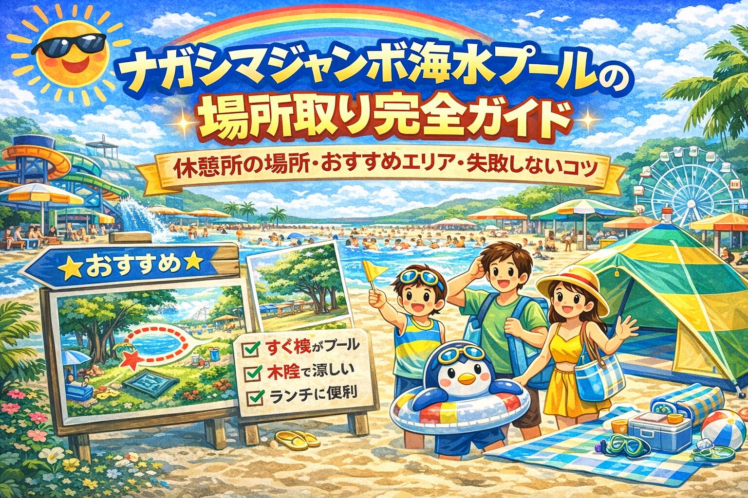 ナガシマジャンボ海水プールに行くとき、意外と重要なのが**休憩場所の確保(場所取り)**です。