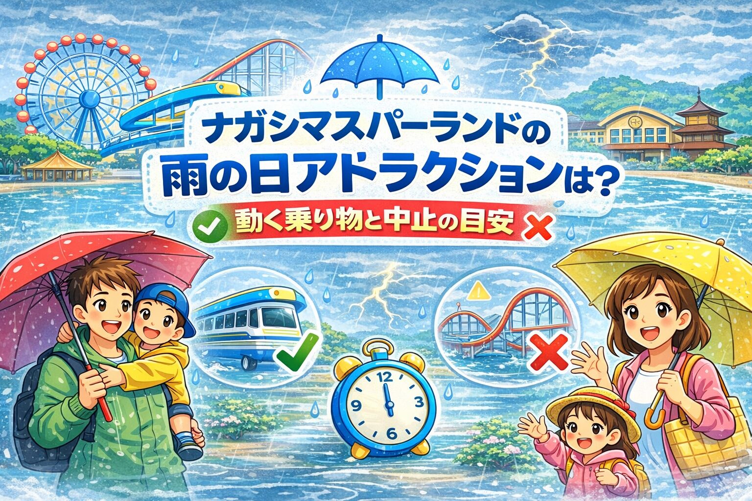 結論として、ナガシマスパーランドでは雨でも一部のアトラクションは運行しています。